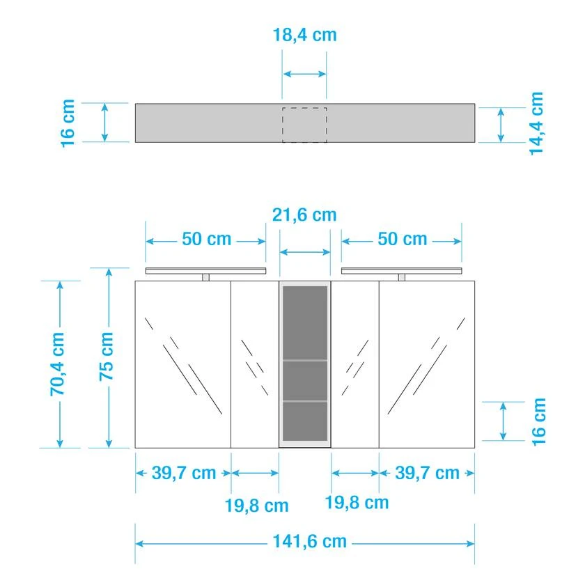 - Spiegel Schmal (BH): 19,8 x 70,4 cm