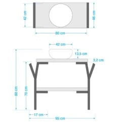 - Aufsatzbecken (BHT): 42 x 13,5 x 42 cm